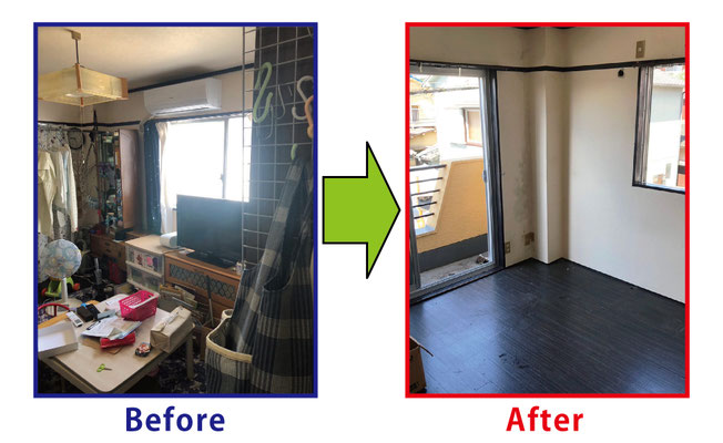 食器類や家電など部屋に残された物を分別、整理して搬出し