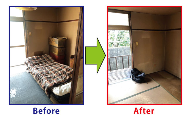 食器や衣類などの小型家財から家具・家電などの大型家財まで搬出作業を行い